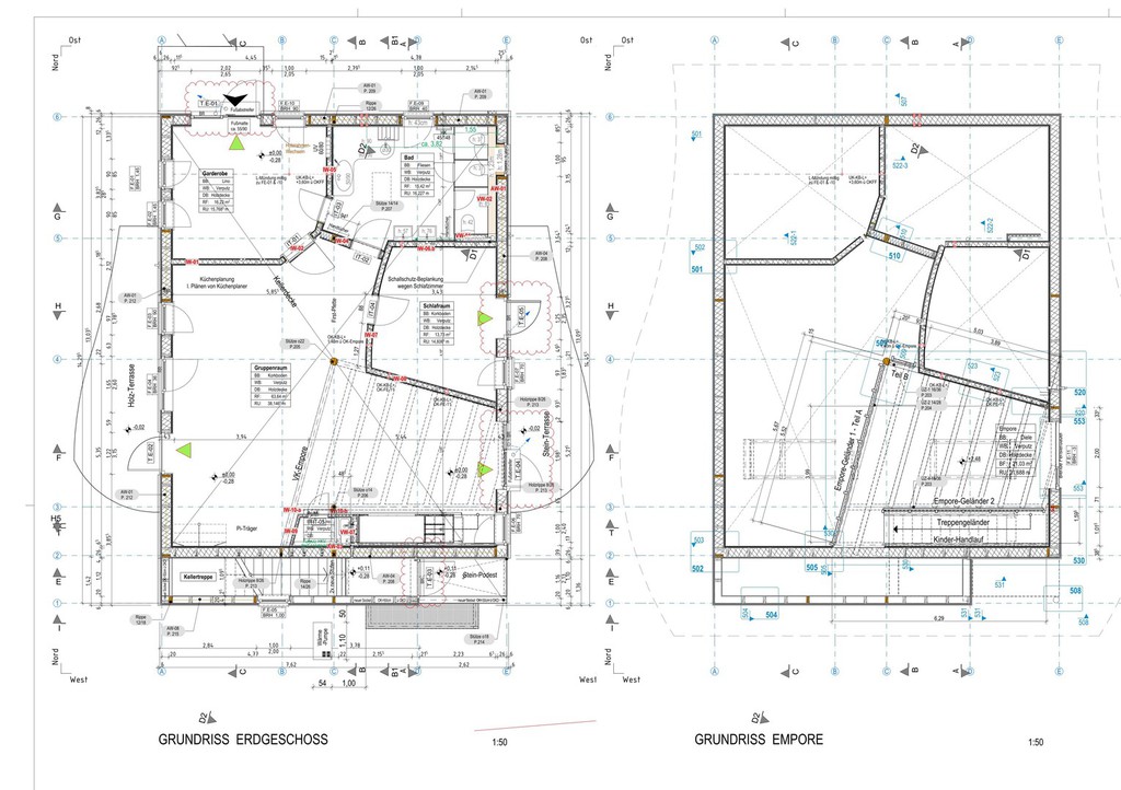 Neben diesen qualitativen, gestalterischen Herausforderungen waren noch die konstruktiven zu meistern: mit einer Pfahlgründung, einem stützenfreien Erdgeschoss und einer Überbauung des Bestandsgebäudes.