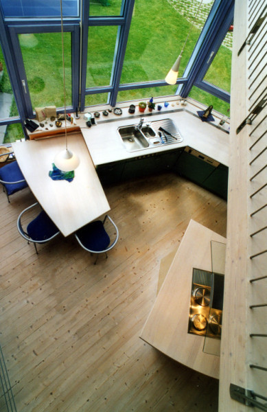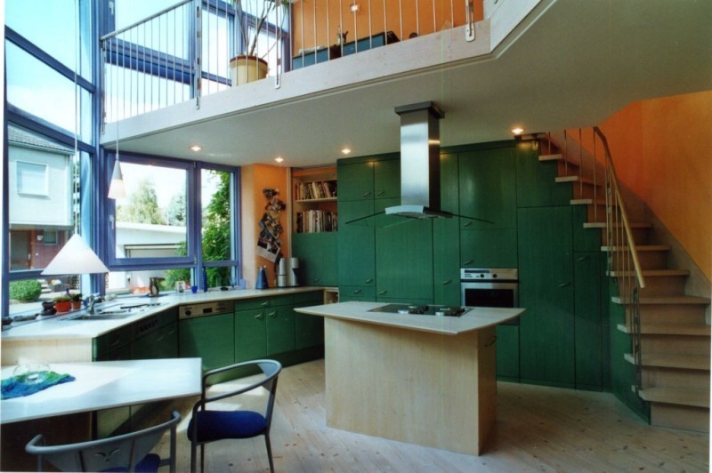 Um die Küche optimal zu nutzen wurden hier Einbauten detailliert geplant. Die Küche wirkt schlicht und bescheiden. Durch die 90 cm tiefen Unterschränke ist Sie dennoch ein Stauraumwunder.